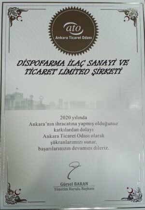 Our export success in 2020 was honored by Ankara Chamber of Commerce